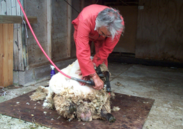 Shearing All sheep over one year old have to have their wool sheared off. This is done in spring or early summer to harvest the wool. The wool is purchased by the British Wool Marketing Board and is sold to manufacturers to make wool for clothing, carpets and home insulation. There has been a growth in the demand for wool as nterest in more natural products has risen. One innovative company helping link wool producers with new markets is The Wooley Shepherd. These pictures show Arthur Cowling from Polsham hard at work. |